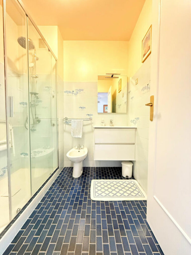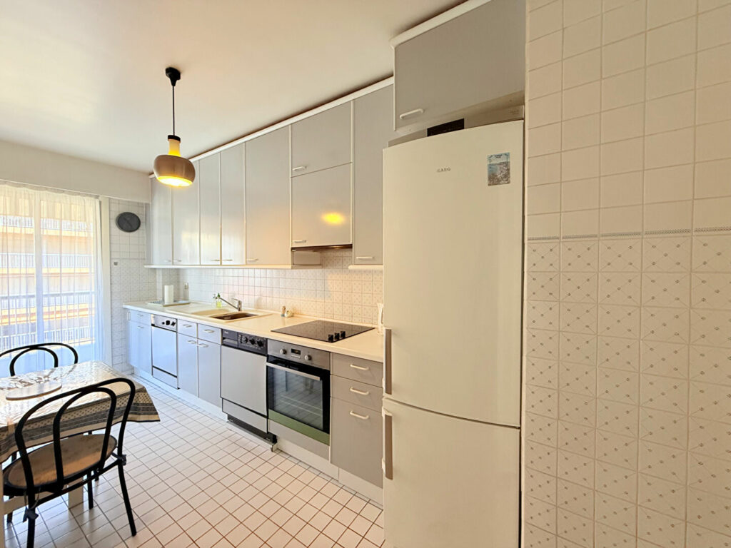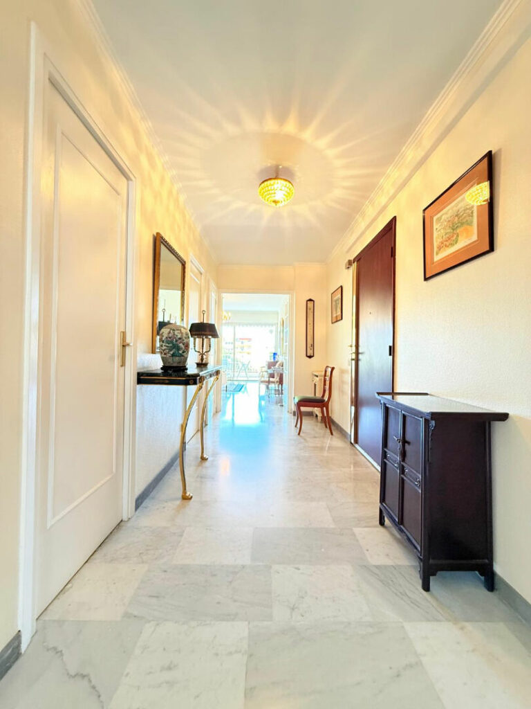 L’appartement est traversant avec une belle exposition sud-ouest, il offre deux terrasses, dont une avec vue sur la mer. L’appartement se compose d’une entrée qui distribue un grand séjour salle à manger, une cuisine indépendante, un WC séparé, une grande chambre de 15 m², de nombreux rangements, un placard, une cave, et une place de parking sécurisée. L’immeuble bénéficie d’un gardien, et toutes les commodités se trouvent au pied de l’immeuble, dans un quartier calme et très prisé.