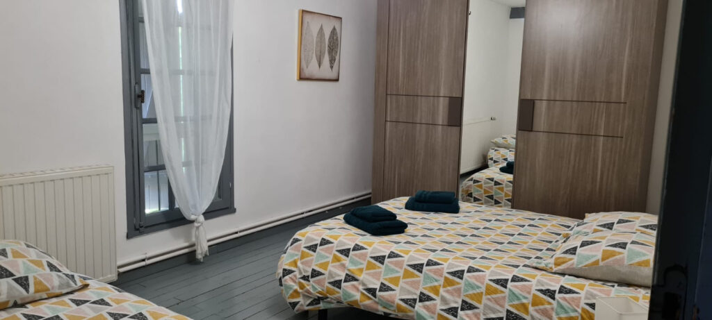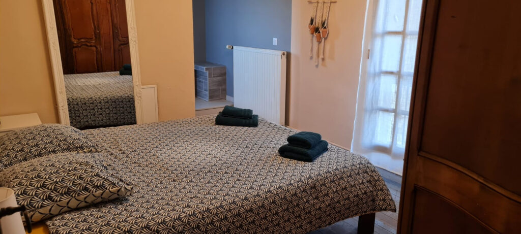Au rez-de-chaussée, vous trouverez un salon avec grande cheminée, une salle à manger, une cuisine ouverte, une chambre avec sa salle d’eau, un WC et une buanderie.