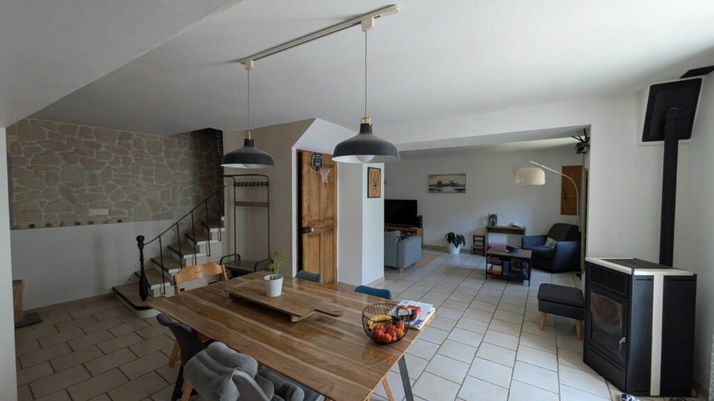 Chauffage : poêle + chauffage électrique à inertie sèche.