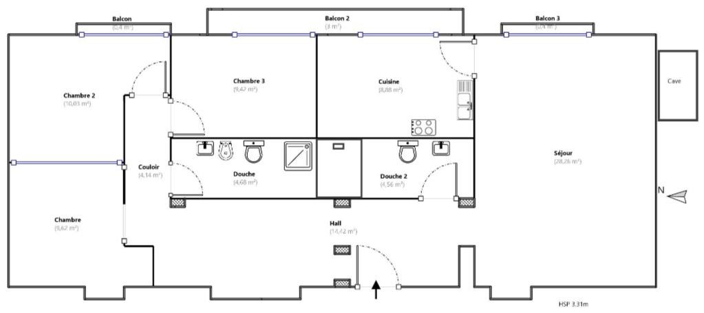 Exceptional apartment on the fifth floor of a former Menton palace. Located in the heart of the city center and in the immediate vicinity of the Biovès gardens. Its location allows you to fully enjoy city life as well as the sea, shops, restaurants, transport, and beaches. With a surface area of approximately 100sqm, composed as follows: An entrance hall, a large living room, a separate kitchen, two bathrooms with toilets, a bedroom, a study bedroom, and numerous closets as well as two balconies. It offers a very high ceiling of 3m30 highlighting its unique and spacious character and a carefully preserved original floor. Due to its elevated position, it allows you to enjoy a splendid view and incredible brightness. This apartment has great potential, combining historical elements with a breathtaking view. Visits and information at 06.70.91.63.53 Agency fees payable by the seller. Apartment subject to the co-ownership regime (52 lots). Amount of annual charges: 5130 euros Date of completion of diagnostics: 04/16/2025 Primary energy consumption: D (181 kWh/sqm/year) Final energy consumption: 172 kWh/sqm/year Estimated amount of annual energy expenditure for standard use: between 1400 and 19400 euros per year Average energy prices indexed for the year 2023 (subscription included) Information on the risks to which this property is exposed is available on the Géorisques website: www.georisques.gouv.fr